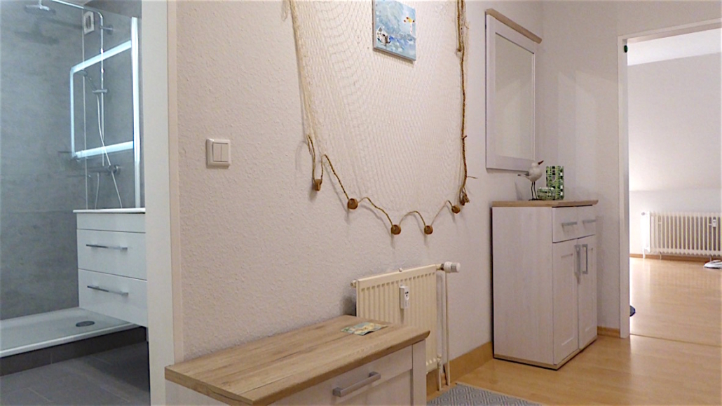 Das Bad bietet coole Eleganz und Komfort in den Farben Grau + Weiß. Der moderne Waschtisch und die tolle Dusche, beide sind ausgestattet mit Markenarmaturen. Die im Bad verlegten, attraktiven, großformatigen Boden- und Wandfliesen und die kleine, topmoderne Küche mit integriertem Induktionsherd, Waschmaschine und Spülmaschine, werden Sie begeistern. Im Wohnzimmer und Schlafzimmer sowie im Flur, wurde Fertigparkett verlegt.